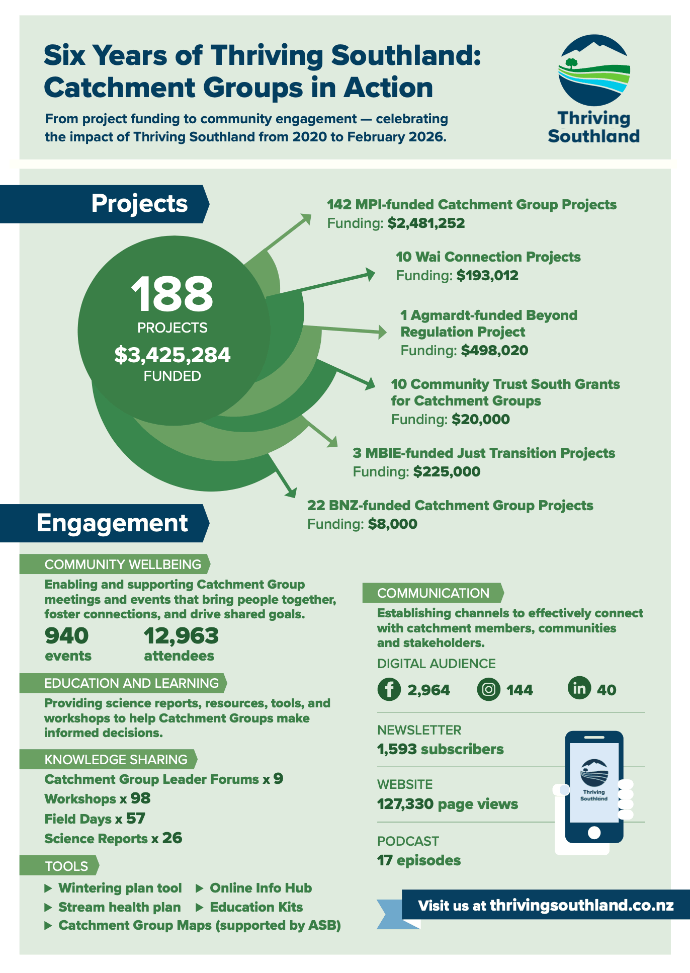 From project funding to community engagement, check out the impact of Thriving Southland from 2020 to February 2026.