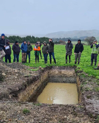 Mother Nature didn't play ball, but we breed them tough in the South. What a great turnout to the first Targeted Solutions towards Balfour's Environmental Challenges Project field day. Dr Clint Rissmann from Land and Water Science was on hand to talk through the latest high resolution soil and landscape maps for the area, before heading out to view two very different soil pits to discuss both nitrate producing and nitrate removal areas of the "fan". Thanks to all those hardy folk who came along!