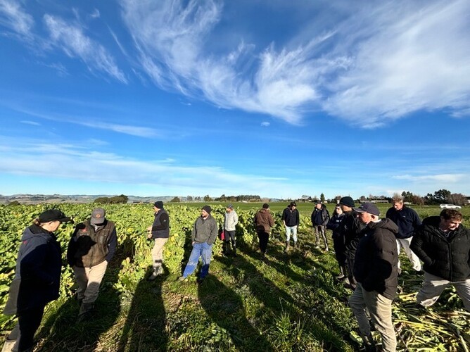 Lower Aparima Catchment Group had a great Friday afternoon out for their annual winter grazing tour. This year they mixed it up, heading out of the Catchment, visiting Recycle South's bale wrap recycling plant, the Southern Dairy Hub and a grazing finishing farm. A fantastic day 'looking over the fence' learning and catching up, even testing dry matter of bulb crops thanks to DairyNZ. Big thanks to the MPI On Farm Team for sorting the BBQ for us, and BNZ for the refreshments. We are excited to see what the 2025 tour brings.