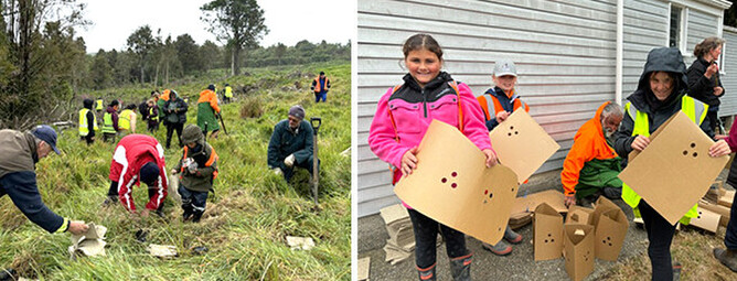 The group purchased the plants and student help using our Environment Southland Community Award prize money from last year. The plants and the help are part of a Hedgehope School fundraiser - call the school if you are interested in knowing more.