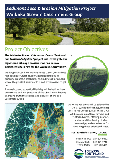 The Waikaka Stream Catchment Group recently met online with Land and Water Science to kick off their Sediment Loss and Erosion Mitigation Project. Led by Dr Clint Rissmann, the session provided valuable insights into the mapping process and what the Group can expect to learn from it.