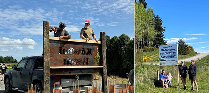 The group have also put up some of their new Catchment Group signs – many thanks Westpac Water Care Grant - and have set up the shade area at their new native plant nursery. What a busy time of year!