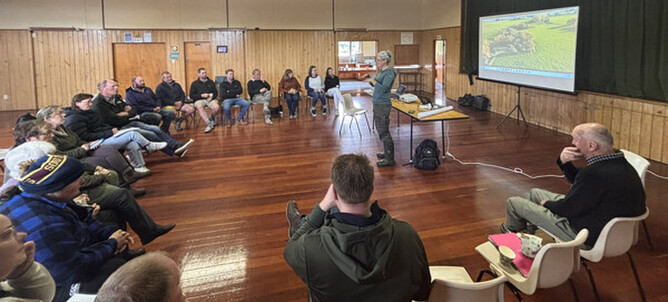 We recently had a good turnout of local farmers who came together to hear the baseline report for the Waimatuku catchment for the first time. This report, developed by DOC and iwi as part of the Ngā Awa River Restoration Programme, highlights their work identifying priorities for restoring biodiversity and more.