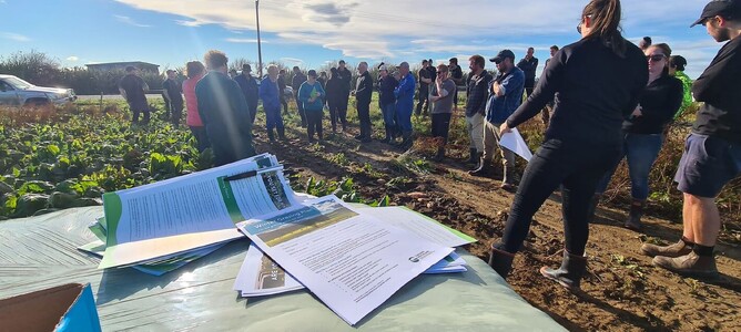 Write it down! That was one of the many take homes from the Waimatuku Catchment Group’s Wintering Day on 20 May. A great turn out, and thanks to our hosts Michael Smith, Colin Hitchcock and Chris Anderson for showing us their winter crops. Also thanks to Mo Topham for facilitating and asking the hard questions. If you are wintering stock this year, get your wintering plan written down!