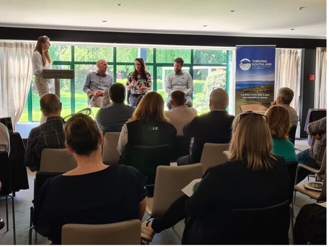 | It was a beautiful Southland Day for our AGM in Gore on 10 November. Thanks to everyone who came along to hear about what Thriving Southland has achieved during the past year, and what's planned for the future. Many thanks to our excellent guest speaker Nick Pyke from AGMARDT and fantastic panel members Blake Holgate from Rabobank and Bernardine Balle-Guilleux, Horticulture NZ Director and Thriving Southland Board Member. Amazing knowledge and great discussion on the future opportunities for NZ Ag. |