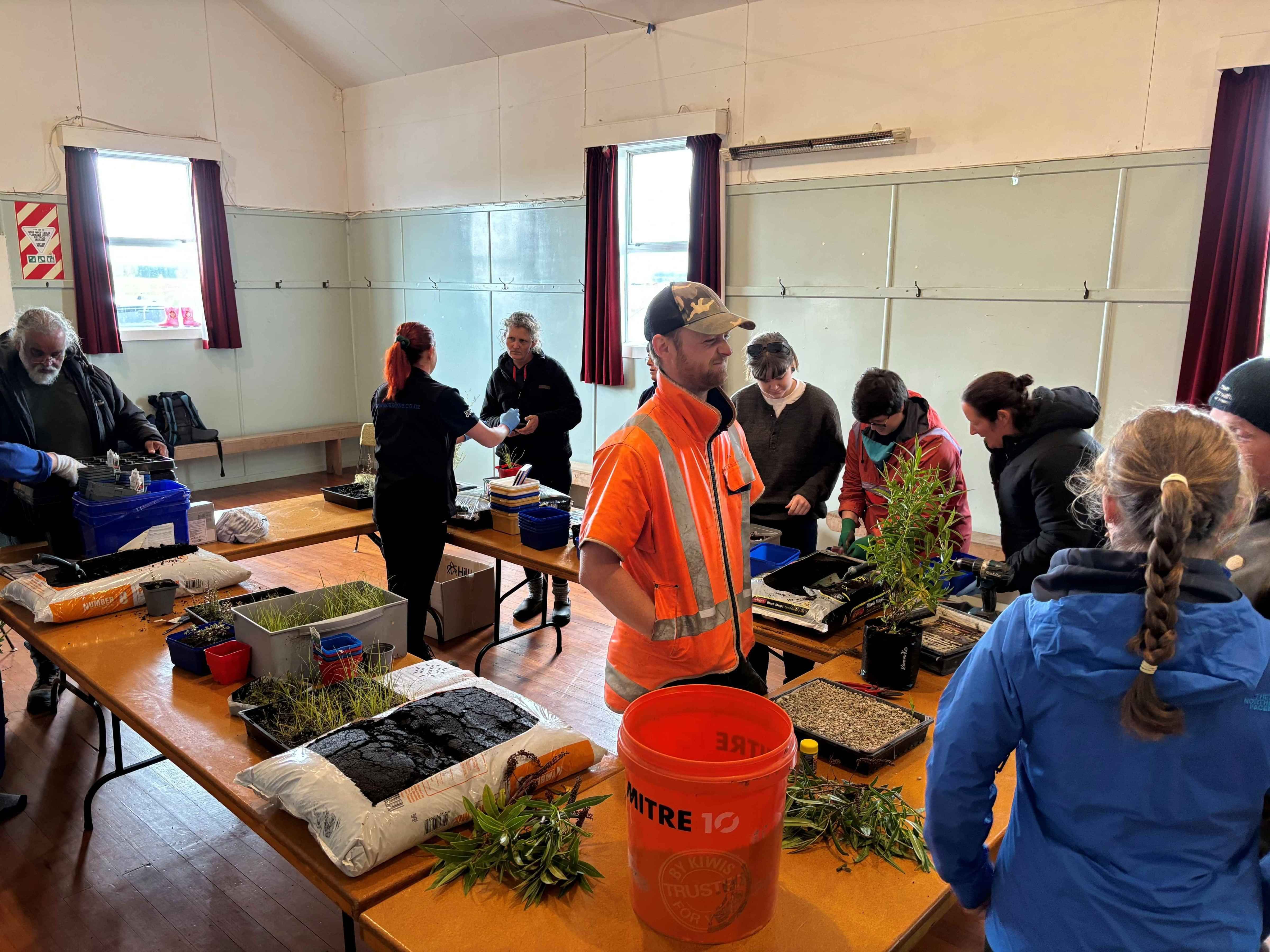 If you’ve got locals keen to grow and care for their own native plants, you should definitely run one of these workshops - it was so much fun! We asked our neighbouring Mid Oreti Catchment Group, AB Lime and Sandra Campbell (Farmer, Otago South River Care member and MPI on farm support) if they could come and run this session for us, as they have amazing skills, knowledge and experience in this space.