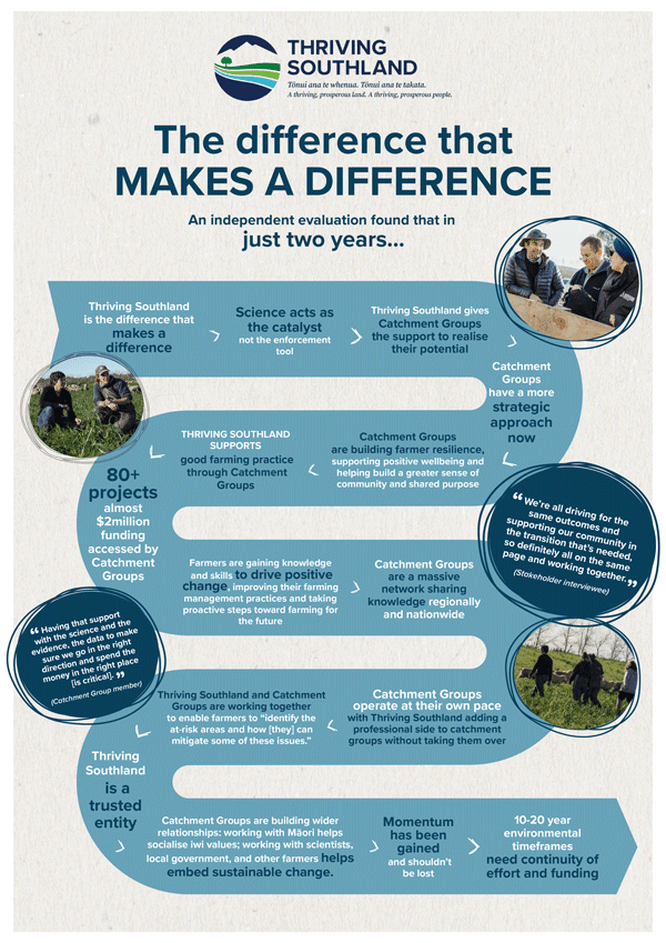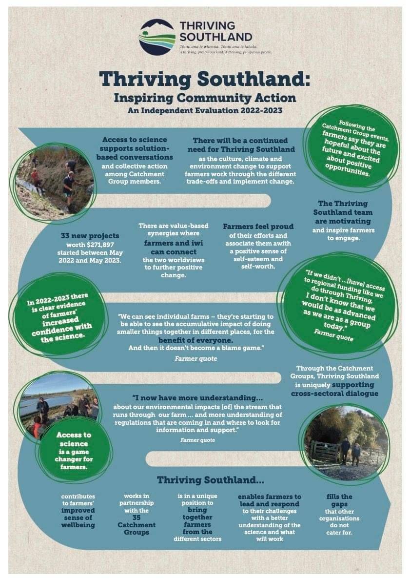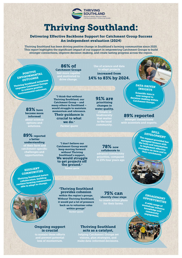“This independent report validates that Thriving Southland is bringing real value through the support it provides; it is more than just a resource. We are a catalyst that aims to empower Southland’s Catchment Groups with the tools, knowledge and support they need to take on local challenges and drive meaningful change.”