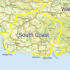 The catchment stretches from Tokanui in the north down the coast to Waipapa Point, Otara, Haldane, and Slope Point, often collaborating with the Waikawa Catchment Group on events.